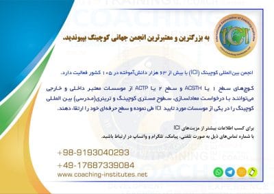 برگزار کننده دوره های تخصصی کوچینگ با ارائه مدارک داخلی و بین المللی از انجمن های معتبر جهان
